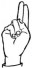 На ћирилици написано ВУКАН РИНЧИЋ састоји се из 11 слова [?]. Исписано ћириличном једноручном азбуком за глувонеме: